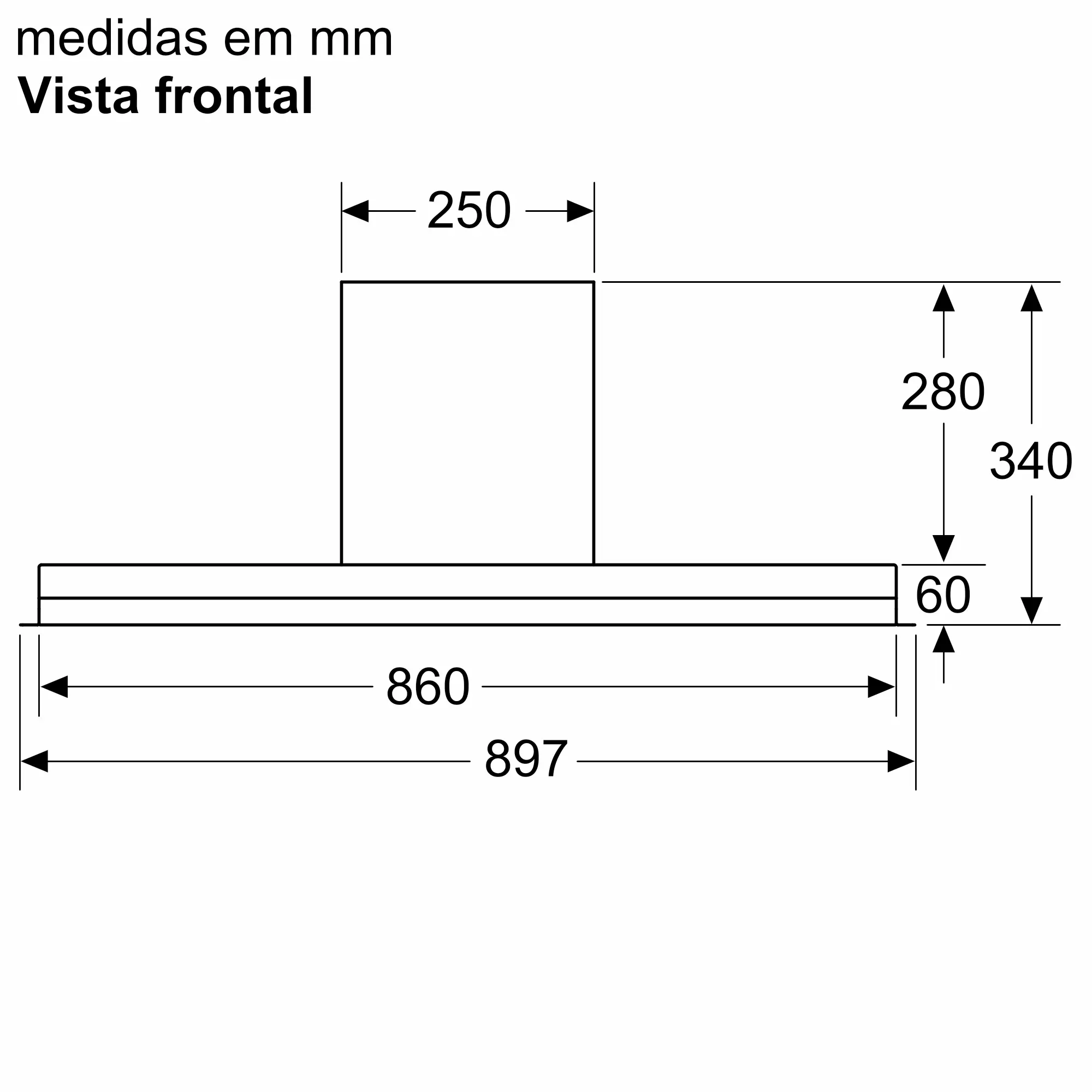 Chaminé com design integrado 90 cm Vidro preto, Preto3BD997GN